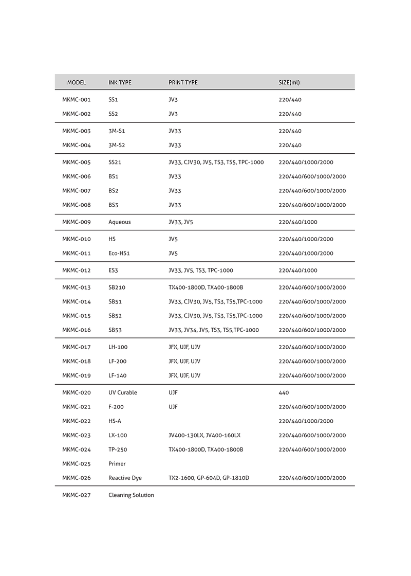 MIMAKI CHIP ONE TIME - TUTTI I MODELLI