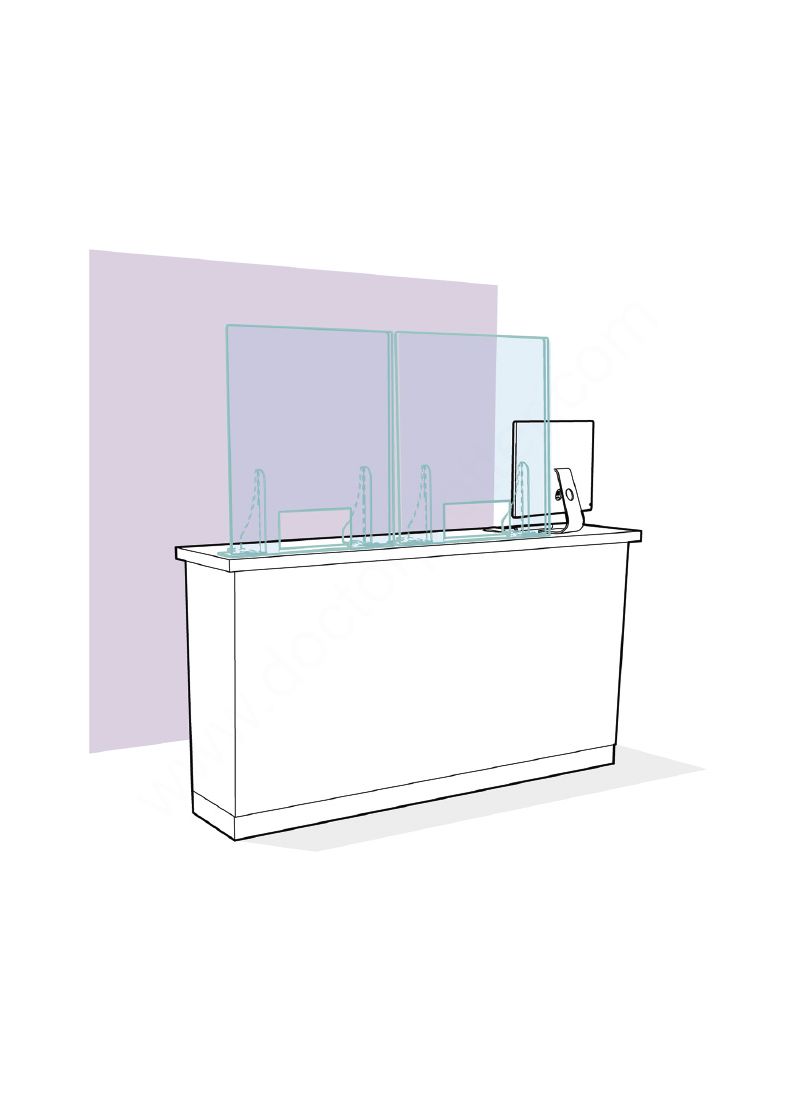 Barriere protettive contro virus e batteri ideale per reception e banconi di uffici e negozi. Scegli la tua dimensione ideale. Disponibile con e senza fessura. Personalizzabile. Materiale: Plexiglass 5 mm. Colore: trasparente, ignifugo e antiurto. AUTO-MONTANTE senza viti e colle.